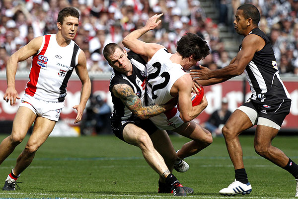 Collingwood (b&w) and St. Kilda (red, b&w) tie in ALF Grand Final 2010