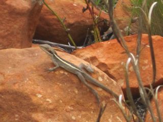Most of us started the hike with our jumpers on, as it was a little cold out. No one complained however, as we knew the sun would catch up to us. Hiking through Kata Tjuta there were lots of birds flying around and the views were anything but ordinary. We made our ways through the valley of the winds before stopping to take a break to talk about the aboriginals that once lived in the area. Jared again shared his knowledge with us, as he talked about the various languages and lives the different groups of aboriginals lead. Adam and him talked about aboriginal paintings. Adam had colored his arm with 4 different colored rocks to demonstrate where they got the pigments used in their art.