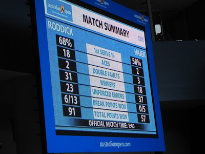 Next up was Andy Roddick (USA) [8] vs. Jan Hajak (CZE). Roddick served first, opening the match with 3 aces and a 40-love hold on serve. This was no surprise as they say Roddick is one of the best servers in the sport, for the last decade.