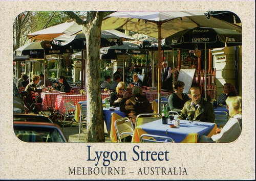 The day before I flew home, my mate Amber and I drove to Melbourne for a day in the city. We went shopping and endured the soggy Melbourne weather. That evening we took the tram to Carlton to meet my mates Mark & Kellie, who graciously met me and took me in, when I first arrived in Australia 10 months prior, for dinner on Lygon Street, in the Italian precinct.